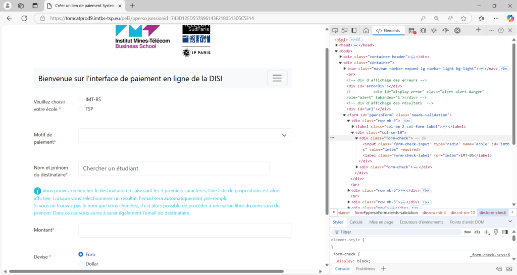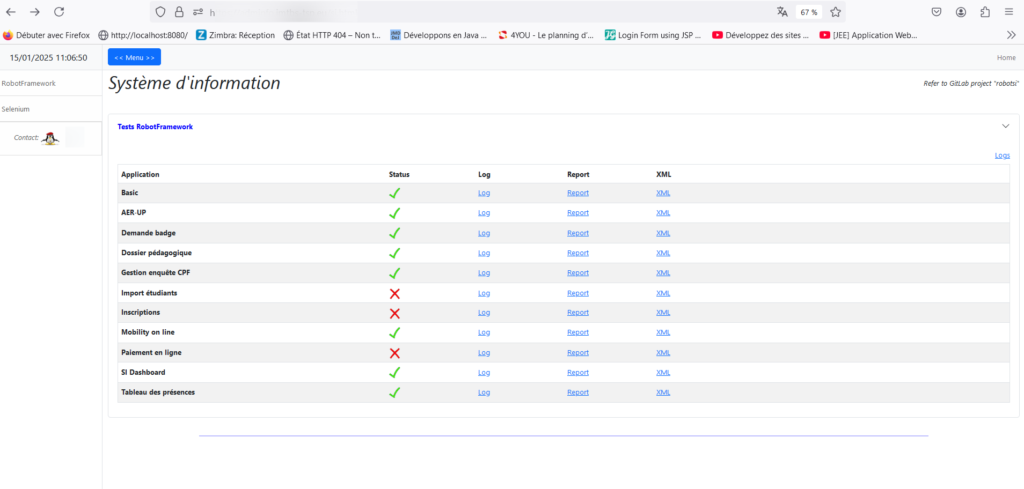 Dans le cadre de mon apprentissage, j’utilise Robot Framework pour automatiser les tests des applications utilisées par Télécom SudParis et IMT-BS. En rédigeant des scénarios de tests avec une syntaxe simple et lisible, je simule un testeur humain interagissant avec l’application afin de valider son fonctionnement. Cette approche me permet de détecter la moindre erreur ou dysfonctionnement, assurant ainsi une qualité optimale et garantissant que toutes les fonctionnalités sont conformes aux attentes.