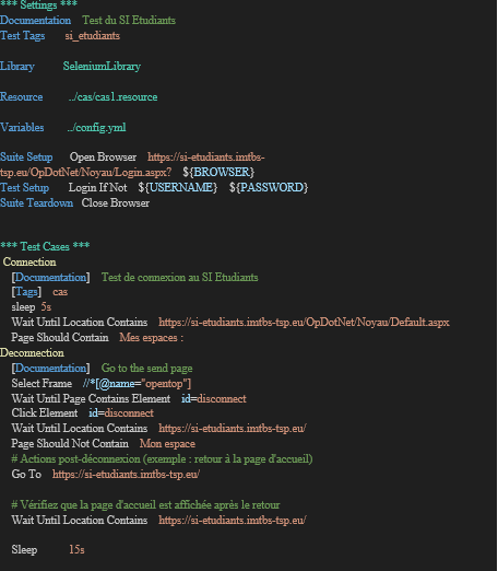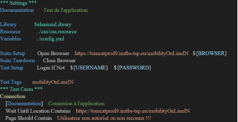 Voici quelques exemples de scénarios de tests que j’écris en utilisant Robot Framework :